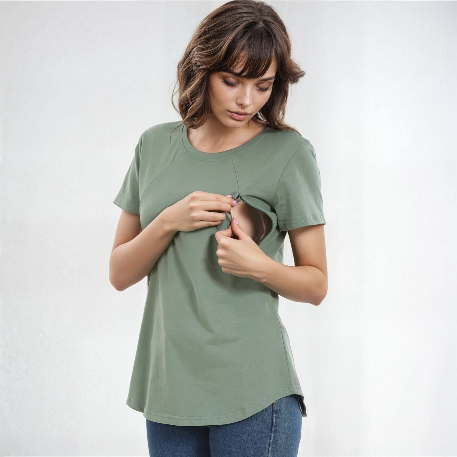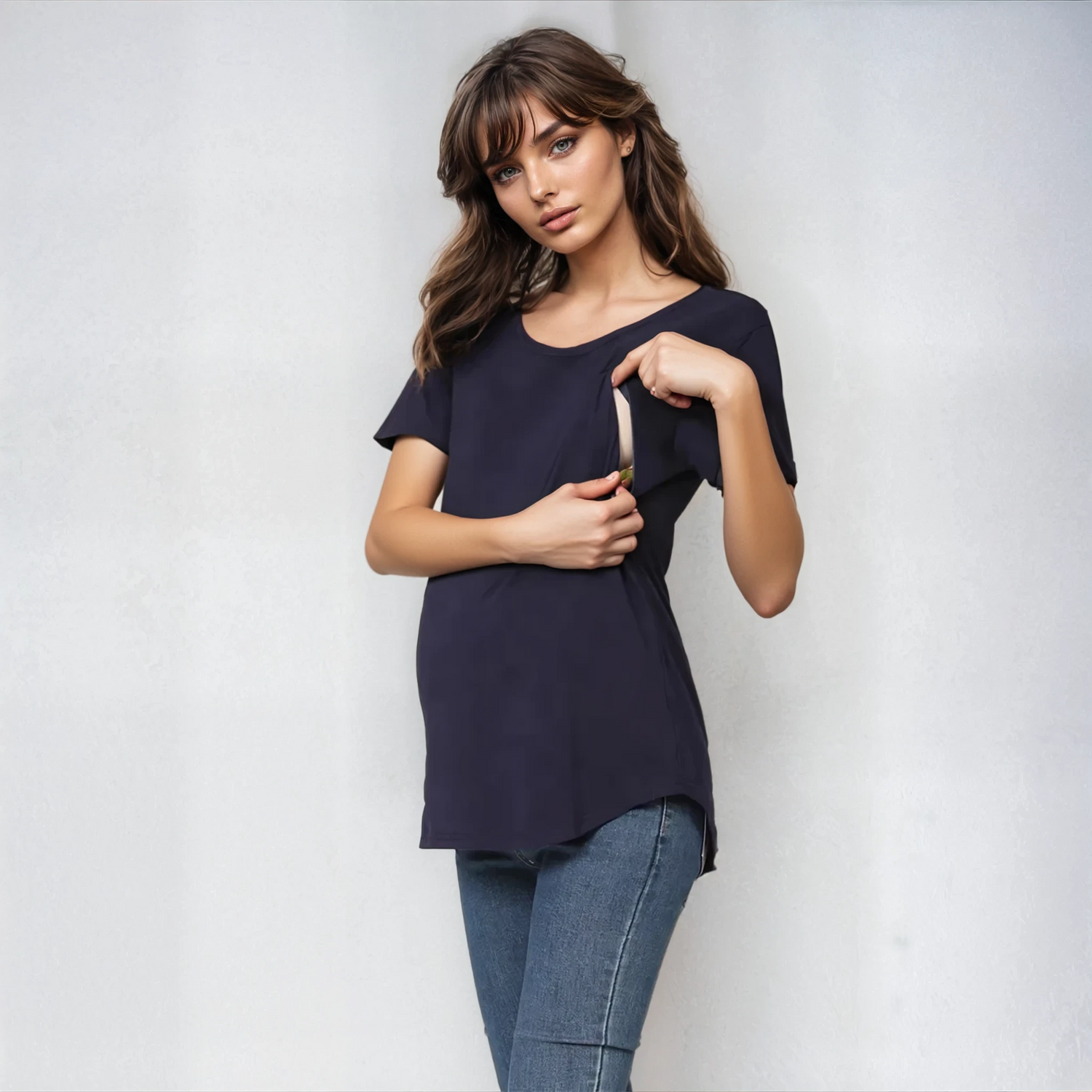 Our Easy Nursing Access T-Shirt features a discreet, pull-away design for quick and hassle-free breastfeeding anytime, anywhere.